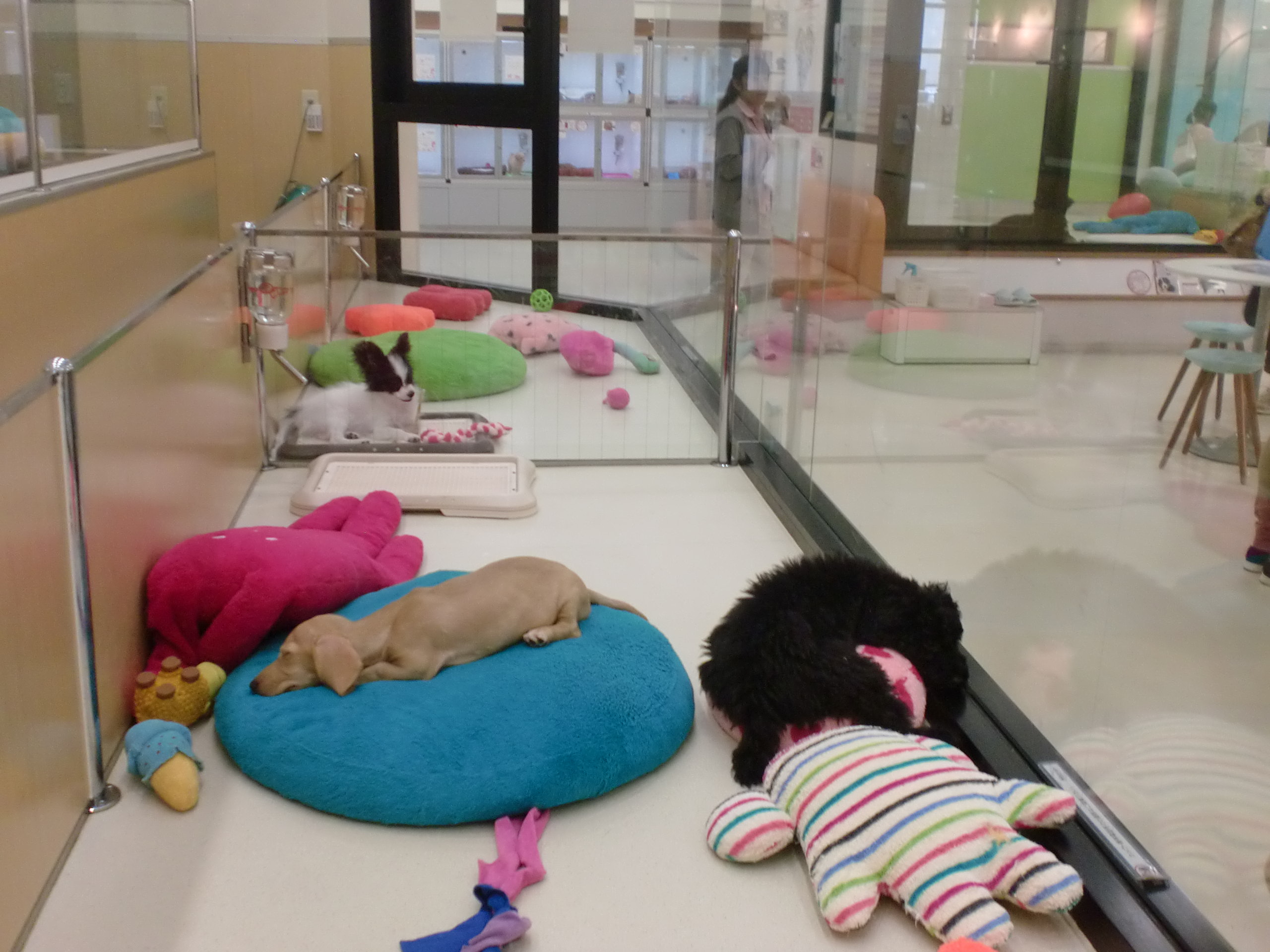 遊び疲れたのか同じお部屋のわんこたちと