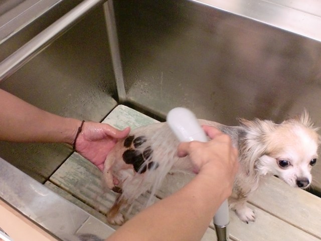 短くカットされるワンコ