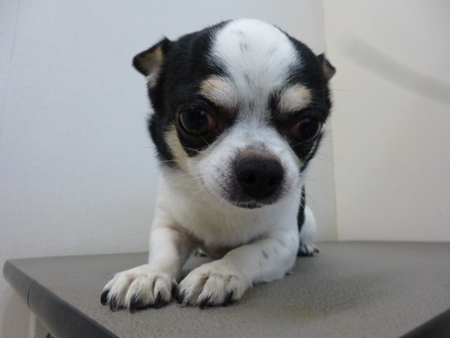と見つめているのはチワワのつよしちゃん